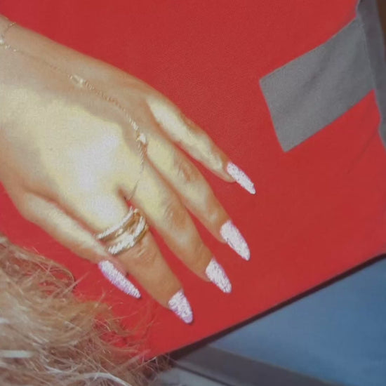 Bold yet elegant, this linked stack ring combines gold-plated bands and crystal pavé for a dazzling layered look. Waterproof for effortless everyday shine.